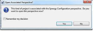 Wszystkie generowane konfiguracje są umieszczane w plikach źródłowych projektu po kliknięciu na Generate Project Content. Te pliki są umieszczane w folderach o nazwach: synergy_gen, synergy i synergy_cfg. Nie powinno się plików konfiguracyjnych modyfikować ręcznie. Jeżeli trzeba coś zmienić, to należy to zrobić za pomocą programu Synergy Configurator. W przeciwnym przypadku ręcznie naniesione zmiany zostaną nadpisane przy kolejnym uruchomieniu konfiguratora.