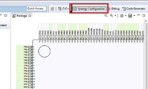 Aby ułatwić pracę programistom wiele programów narzędziowych IDE ma wbudowywane konfiguratory, które znacznie tę pracę ułatwiają. Konfigurator wbudowany w e2studio nazywa się Synergy Configurator, a jego ustawienia są zapisywane w pliku configuration.xml. Otwarcie tego pliku powoduje otwarcie perspektywy konfiguracyjnej z konfiguracją projektu.