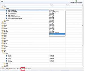 - ICU (Interrupt Controller Unit). Pokazuje wszystkie źródła przerwań od układów peryferyjnych i umożliwia skonfigurowanie przerwań (rysunek 21).