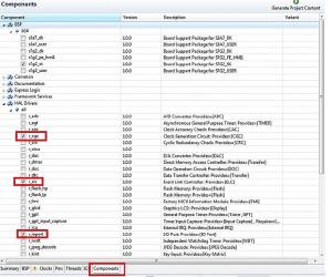 - Components. Wyświetla komponenty biblioteki SSP oraz dołączone do projektu (rysunek 22). Komponenty mogą być dołączane za pomocą zakładki Threads.
