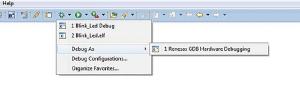 Debugowanie jest uruchamiane po kliknięciu na ikonkę przypominającą owada i wybraniu Debug As → Renesas GDB Hardware Debugging (rysunek 26). Debbuger programu e2studio działa podobnie jak w środowiskach IDE innych producentów.