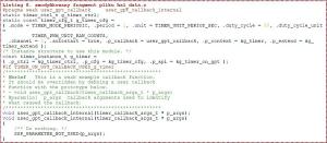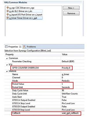 Tak skonfigurowany Timer przepełnia się i zgłasza przerwanie co 1 sekundę. Teraz na podstawie nowej konfiguracji Synergy Configurator wygeneruje nowe pliki konfiguracyjne po kliknięciu na Generate Project Content. W pliku hal_data.h konfigurator dopisał definicje pokazane na listingu 7.
