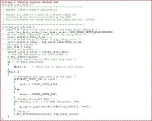 Wróćmy do naszego projektu, którego zadaniem jest miganie diodą LED. Konfigurator projektu wygenerował między innymi plik źródłowy hal_entry.c przeznaczony do modyfikacji przez użytkownika, umieszczony w katalogu src oraz plik main.c umieszczony w katalogu src/synergy_gen. Funkcję główną main() pokazano na listingu 1.