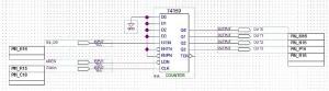 W naszym przypadku skupimy się na analizie zmian stanów na liniach wyjściowych w zależności do zmian stanów na liniach wejściowych, więc filtr powinien być ustawiony na Pins: all. Listę znalezionych przez symulator linii wejściowych i wyjściowych widać na rys. 5, warto ją porównać z naszym projektem (rysunek 7) - jak widać, w obydwu przypadkach nazwy linii wejściowych i wyjściowych są identyczne.