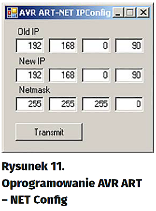Zgodnie z zasadami trzy pierwsze wartości adresu powinny być identyczne i, oczywiście, są. Czwarta pozycja może mieć wartość dowolną, byle mieściła się w zakresie 0…255. Jeśli z jakichś powodów nie możemy zmienić adresu lub maski w punkcie dostępowym, to możemy dokonać stosownych zmian w samym węźle Art-Net za pomocą odpowiedniego programu – jest taki o nazwie AVR ART – NET Config (rysunek 11). W polu „Old IP” wpisujemy dotychczasową wartość adresu IP, w polu „New IP” nową wartość IP, a w polu „Netmask” możemy zmienić wartość maski. Po dokonaniu zmian klikamy „Transit”. Pozostało nam tylko kliknięcie w „Next”, aby przejść do kolejnego ekranu (rysunek 12), na którym jest zamieszczone podsumowanie dokonanych zmian. Sprawdźmy wszystko dokładnie i możemy zapisać dokonane zmiany, klikając „Save”, następnie „Reboot” (rysunek 13).