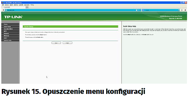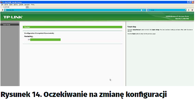 Odczekujemy na zakończenie wprowadzania zmian (rysunek 14), a następnie klikamy w przycisk „Exit” (rysunek 15). Zamykamy przeglądarkę, ponieważ zakończyliśmy konfigurowanie punktu dostępowego. Pamiętajmy jednak, że powyższy opis dotyczy konkretnego modelu. Jeżeli zastosujemy inny, poszczególne kroki mogą nieco się różnić od opisanych powyżej, jednak w praktyce konfigurowanie będzie się odbywać za pomocą przeglądarki internetowej, a schemat działania będzie podobny.