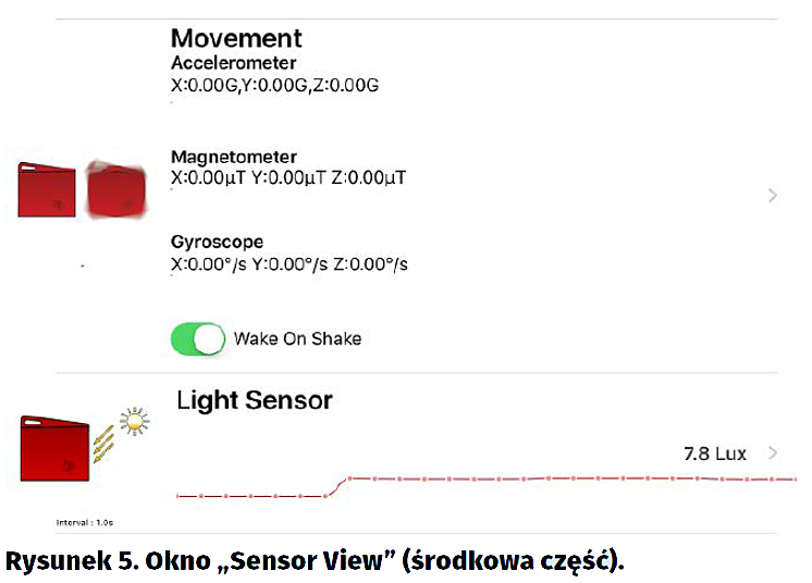 - Light Sensor – poziom oświetlenia otoczenia [Lux], pomiar wykonuje układ OPT3001 (rysunek 5).