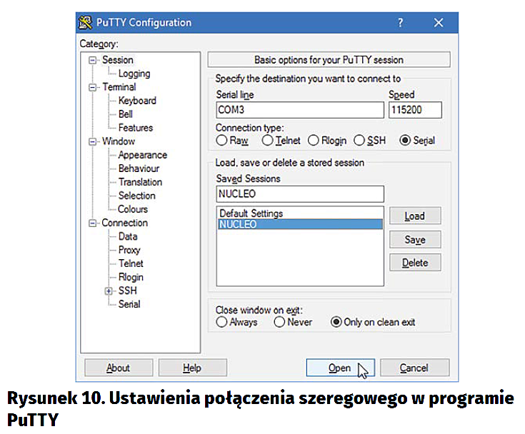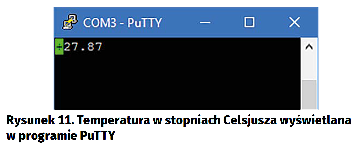 bench for STM32, i odczytać wartość temperatury, korzystając z programu PuTTY lub dowolnego innego emulatora terminalu.