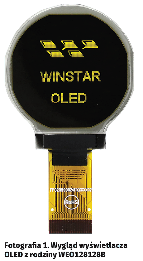 Wygląd wyświetlacza OLED z rodziny WEO128128B pokazano na fotografii 1.