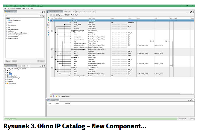 Artykuł ma być instrukcją, jak krok po kroku używać własnych IP Core w systemach opartych na procesorze NIOS II, skupia w sobie najważniejsze kroki i etapy w procesie adaptacji własnego kodu do współpracy z magistralą Avalon. Środowisko Quartus jest bardzo złożone, przy projektowaniu pomyłka lub pominięcie jakiegoś etapu powoduje błędne działanie projektu. Starałem się zachować odpowiednią kolejność wykonywanych czynności przy projektowaniu, tak aby zminimalizować możliwość pomyłek.