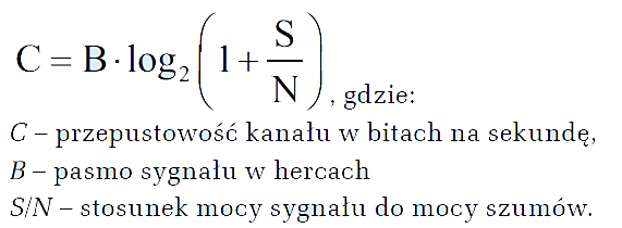 Przepustowość kanału informacyjnego, pasmo oraz stosunek sygnału do szumu są ze sobą związane zależnością zwaną twierdzeniem Shannona-Hartleya. Wygląda ona następująco: