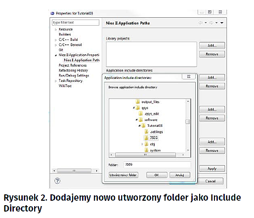 - wybieramy Nios II Application Properties Nios II Application Paths,