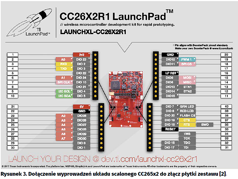 Wielordzeniowy procesor CC2652R1F typu SOC (System on Chip) rodziny CC26xx o firmy Texas Instruments jest przeznaczony dla komunikacji bezprzewodowej w pasmie ISM 2,4 GHz. Należy on do platformy SimpleLink MCU Platform [1]. Platforma integruje układy scalone, moduły uruchomieniowe, środowisko programowe Code Composer Studio (CCS), pakiety programowe Software Development Kit (SDK), pakiety przykładowych projektów programowych (witryna TIREX), oraz warsztaty praktyczne (SimpleLink Academy) [8]. Całość jest optymalizowana pod kątem tworzenia projektów dla Internetu Rzeczy. Szerszy opis narzędzi programowych platformy SimpleLink został zamieszczony w artykule w EP12/2017 [S12].