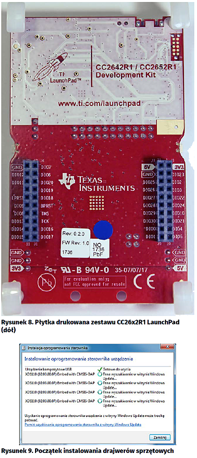Po dołączeniu płytki zestawu CC26x2R1 LaunchPad kable USB do komputera PC nowy sprzęt zostaje wykryty i rozpoczyna się instalowanie sterowników (rysunek 9). Jest bardzo istotne, aby poczekać na zakończenie tego instalowania (rysunek 10).