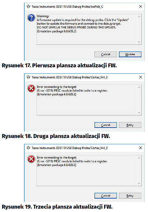 I tu pojawia się problem. W dostępnych opisach nie jest nigdzie powiedziane, jakie oprogramowanie jest wpisane do procesora. Dołączenie, podobnie jak w poprzednich zestawach platformy SimpleLink, programu terminala PuTTY do portu użytkownika (115200 8N1) nie pokazuje żadnej aktywności komunikacyjnej.