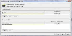 - Do konfiguracji zostaną dodane pliki ograniczeń – do płyty, i każdego z adapterów. Liki źródłowe znajdują się w katalogu LibraryFpgaNB3000 Constraint Files. W każdym przypadku użyte pliki są zależne od użytego w projekcie sprzętu i jego wersji. Dla przykładu jeżeli w projekcie jest użyty Xilinx Spartan- 3 oznaczenie DB30 (wersja 6), wtedy plik który zostanie pobrany i dodany do konfiguracji to DB30.06.Constraint.