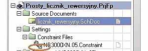 Po kliknięciu OK, a katalog Settings zostanie dodany do projektu (rysunek 7), a następnie pojawi się na panelu Projects. Pliki ograniczeń zostaną wyświetlone w katalogu Constraint Files. Mała ikonka (zaznaczona na rysunku) wskazuje, że plik jest zlinkowany z projektem, czyli jego żródła znajdują się poza katalogiem projektu.