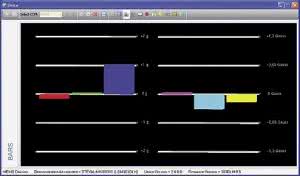 Po podłączeniu modułu i wykryciu go przez system Windows można uruchomić program Unico. Na ekranie startowym należy wybrać rodzaj modułu, który podłączyliśmy. Następnie, po uruchomieniu się zasadniczej części Unico, trzeba wybrać odpowiedni port COM, a następnie kliknąć ikonę nawiązania połączenia. Po połączeniu można, po wybraniu ikony Start, rozpocząć obserwację napływających danych. Kolejne ikony pozwalają przywołać ekrany, na których można zmienić konfigurację układu, obejrzeć i modyfikować zawartość rejestrów, a także obserwować i wizualizować odbierane dane na kilka sposobów. Jeden ze sposobów wizualizacji pokazano na rysunku 2.
