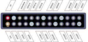 Oprócz portów wejścia-wyjścia na złączu dostępne są również napięcia 3.3 V (z wewnętrznego stabilizatora) i 5 V (z zasilacza zewnętrznego). Wydajność prądowa portów układu BCM2835 pozwala na wysterowanie co najwyżej diody LED, dlatego w wypadku konieczności sterowania układów pobierających większy prąd konieczne będzie wykonanie odpowiednich driverów. Jeśli chcemy sterować układami zasilanymi niskim napięciem stałym, wystarczający może okazać układ z tranzystorami MOSFET IRLL2705 umożliwiający sterowanie odbiornikiem o napięciu zasilania max 40 V i prądzie do około 2 A. Schemat takiego układu dla pojedynczego kanału (urządzenia) pokazano na rysunku 2.