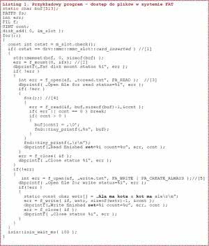 Oprogramowanie - dostęp do plików w systemie FAT. Wszystkie przykłady zostały skompilowane z wykorzystaniem toolchaina GCC w wersji 4.8.2, który jest dostępny na mojej stronie internetowej pod adresem http://goo.gl/CZg2fP.