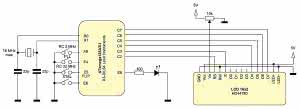 Sercem generatora tego typu jest rezonator kwarcowy, w skrócie zwany kwarcem. Dołączamy go do nóżek R0 i R1 portu R. Są to piny ogólnego przeznaczenia i jeśli nie korzystamy z generatora kwarcowego, możemy ich użyć w innym celu. Oprócz kwarcu, musimy także zastosować kondensatory o niewielkiej pojemności widoczne na schemacie na rys. 2, w sposób znany z mikrokontrolerów ATmega i ATtiny.
