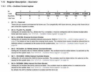 Konfiguracja generatora kwarcowego jest trochę bardziej skomplikowana niż generatory omawiane dotychczas, aczkolwiek nie jest to problem, z którym sobie nie poradzimy. Za nastawy generatora kwarcowego jest odpowiedzialny rejestr OSC. XOSCCTRL. Zwróćmy uwagę na fragment dokumentacji na rysunku 6.