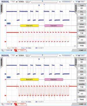 W kolejnej części cyklu omówiono protokół stosowany w interfejsie I²C. Do przesyłania danych wykorzystywane są tylko dwie linie, zatem dwukanałowy oscyloskop Rigol DS2202 pracujący jako analizator protokołów będzie odpowiednim przyrządem.