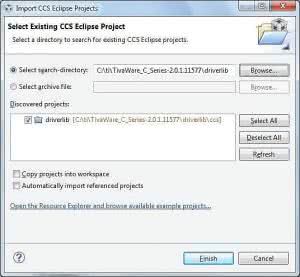 <p>Zaimportuj przykładowe projekty dla zestawu ewaluacyjnego Tiva C Series TM4C123G LaunchPad.</p>