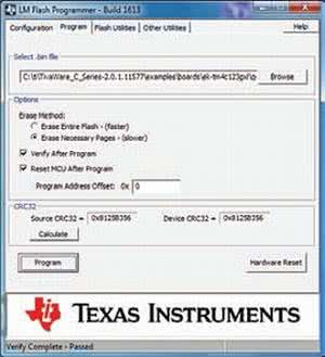 <p>Przykładowe projekty pakietu TivaWare zawierają gotowe pliki binarne do programowania procesora. Do programowania można zastosować program LM Flash Programmer [6].</p>