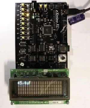 W pętli głównej, musimy jedynie cyklicznie wyświetlać wynik. Jest to zadanie bardzo proste (wyświetlacz LCD omówiono w EP 2013/11). Jedyny problem to przeliczenie cykli zegarowych, zmierzonych przez timer, na pojemność w dowolnej jednostce (ja wybrałem mikrofarady) - musimy skalibrować nasz miernik. Jako kondensator wzorcowy użyłem zwyczajnego kondensatora elektrolitycznego 100 mF. Na wyświetlaczu uzyskałem wynik ok. 31000. Dlatego w kodzie programu, w linii oznaczonej numerem (1), wartość rejestru TCC0.CCA dzielę przez 31.