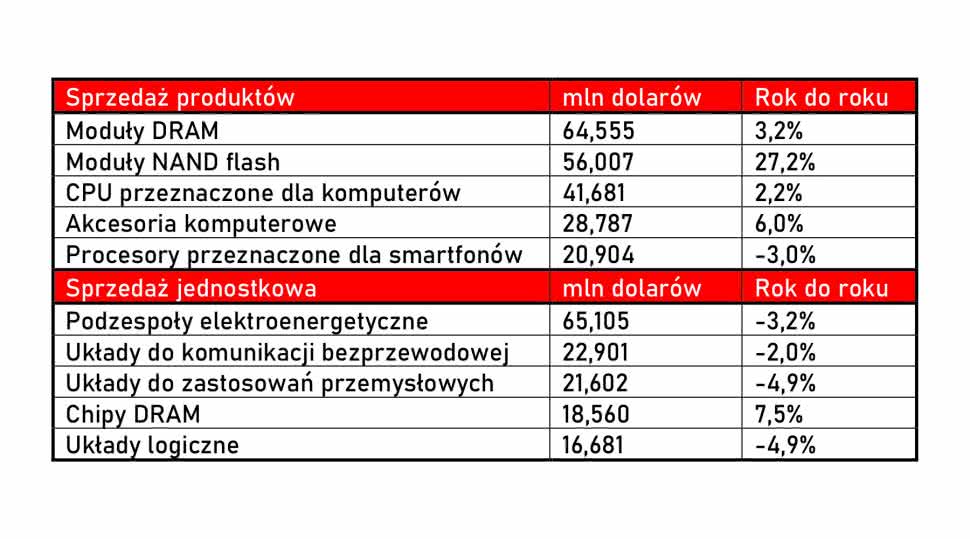 Sprzedaż na rynku półprzewodników - 2020 rok