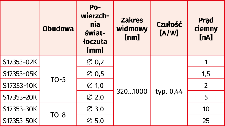 Firma Hamamatsu Photonics wprowadza na rynek serię krzemowych czujników światła S17353 o małych szumach i dużej czułości, przeznaczonych do pracy na długości fali do 800 nm. Są to elementy nadające się idealnie do przyrządów analitycznych, pracujących w zakresie małego natężenia światła.