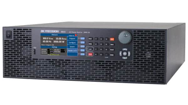 • 15% zniżki na programowalne źródło prądu przemiennego BK9833 firmy B&K Precision. Jest to sprzęt, w którym niskie zniekształcenia harmoniczne spełniają wymogi standardu IEC 61000-3-2, a parametry znamionowe wyjścia to 300 V, 30 A i 3000 VA. Dzięki temu idealnie nadaje się do wstępnych badań zgodności projektowanych urządzeń. Źródło pozwala również na symulowanie szeregu zakłóceń na linii zasilającej, korzystając z trybów impulsów, kroków i list, z użyciem wbudowanych lub definiowanych przez użytkownika przebiegów. Sterowanie ręczne odbywa się z użyciem klawiatury numerycznej, obrotowej gałki, klawiszy nawigacyjnych i 4,3-calowego, kolorowego wyświetlacza LCD, na którym prezentowane jest nawet do 12 wyników pomiarów jednocześnie. Wbudowane interfejsy LAN, USB, GPIB i RS232 pozwalają na sterowanie zdalne, w tym za pomocą standardowej przeglądarki, przy użyciu zintegrowanego w urządzeniu serwera www.
