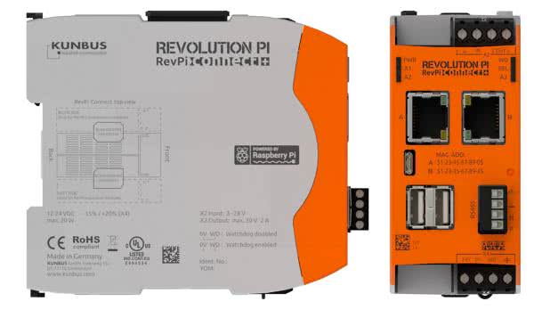- RevPi Connect+: urządzenie bazujące na Raspberry Pi Compute Module 3+, które daje użytkownikom maksymalną swobodę projektowania i wdrażania projektów IIoT, za sprawą otwartej platformy. Dwa złącza ethernetowe sprawiają, że sprzęt może być podłączony jednocześnie do sieci automatyki i sieci IT, przekazując dane pochodzące z maszyn z zakładu fabrycznego do chmury, lub do wyżej położonych, z logicznego punktu widzenia, systemów IT. RevPi Connect ma też dwa złącza USB, jeden port microHDMI i jeden microUSB.