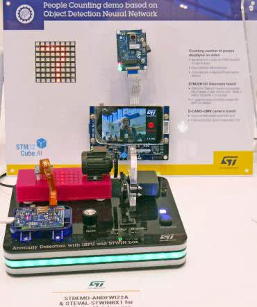 Na fotografii 3 pokazano demo układu zliczającego liczbę osób widocznych na obrazie z kamery. Firma pokazała także swoje narzędzie STM32Cube.AI Developer Cloud, które umożliwia wczytanie wytrenowanego modelu sieci bezpośrednio z przeglądarki, przeprowadzenie kwantyzacji parametrów na tryb stałoprzecinkowy oraz przetestowanie wydajności płytek dostępnych w laboratorium ST.