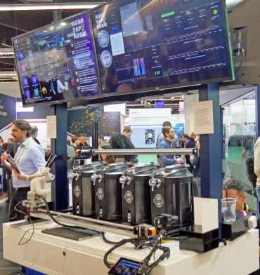 Na przykładzie płytek Demo Badge, które zostały zaprezentowane na fotografii 17 (niestety niedostępne w sprzedaży), można było zobaczyć, jak działa ExpressLink w praktyce. Po obejrzeniu prezentacji, na stoisku można było skosztować napojów przygotowanych przez robobarmana AWS (fotografia 18).