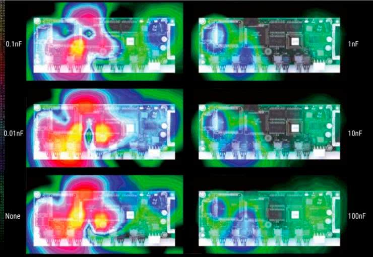 Na stoisku Astat jeszcze jedna rzecz przykuwała uwagę – skaner EMC firmy Pendulum (pokazany na fotografii 6). Urządzenie to pozwala na skanowanie całych płytek drukowanych podczas pracy, aby mapować natężenie pola elektromagnetycznego wokół urządzenia (fotografia 7). Pozwala to w prosty sposób identyfikować, jakie komponenty czy subsystemy naszego projektu mają największy wkład w emitowane zakłócenia i pozwala skrócić czas poprawek w projekcie na etapie optymalizowania zgodności elektromagnetycznej.