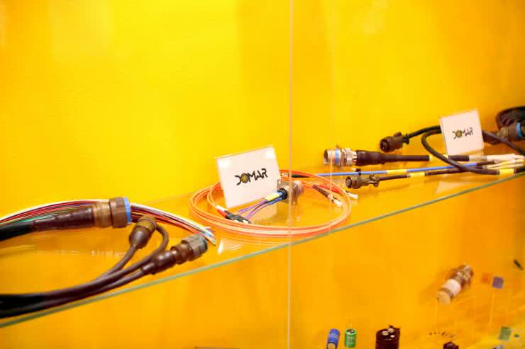 Warszawski Domar reklamuje się hasłem „Złącza do misji specjalnych” – nie bez powodu. Firma na MSPO wystawiała szeroki wybór złącz i wiązek kablowych, bazujących na elementach renomowanych firm, takich jak Souriau-Sunbank, Glenair, Radiall czy Bernier. Część (niewielką) oferty firmy, która prezentowana była na targach, pokazano na fotografii 9.