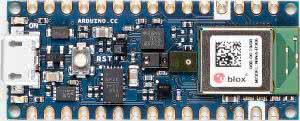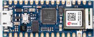 Arduino Nano 33 BLE, dedykowana jest dla realizacji układów komunikacyjnych wykorzystujących interfejs Bluetooth 5.0 LE. Płytka także wykorzystuje architekturę ARM, zastosowany procesor to nRF52480 z rdzeniem Cortex-M4F wbudowany w moduł u-Blox NINA B306. Dostępna jest pamięć programu 1 MB FLASH i 256 kB RAM. Na wyposażeniu płytki znalazło się miejsce na 9-osiowy akcelerometr typu LSM9DS1 podłączony przez magistralę I2C. Wyprowadzenie GPIO zgodne są tylko ze standardem 3,3 V. Cena płytki w sklepie to ok. 17,5 € w wersji bez złączy GPIO i 19,5 € ze złączami.