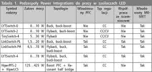 Przegląd driverów firmy Power Integrations przeznaczonych do sterowania pracą zasilaczy stałoprądowych w systemach oświetlenia LED
