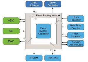 Jedną z cech mikrokontrolerów ATxmega jest system zdarzeń (Event System, rysunek 2), który umożliwia współdziałanie peryferiów bez udziału CPU z gwarantowanym czasem reakcji.