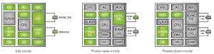 Oprócz tego programista ma do dyspozycji wewnętrzną pętlę PLL (wejście: 400 kHz - 32 MHz, wyjście: 10 MHz - 128 MHz) i wbudowany preskaler (2 - 2048 razy).