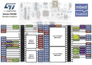 Ponieważ złącze systemowe Arduino R3 zawiera niewiele linii sygnałowych - w przeciwieństwie do mikrokontrolerów stosowanych w zestawach STM32NUCLEO, które wyposażono w dużą liczbę linii GPIO - producent zastosował w alternatywny zestaw złącz o nawie Morpho (rysunek 2). Złącza te zapewniają większą elastyczność niż Arduino R3, ale dotychczas nie są dostępne ekspandery zgodne z tym standardem.