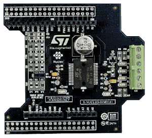 Ostatnią "ekspanderową" nowością są zestawy oznaczone symbolem X-NUCLEOIHM01A1 (fotografia 5), które wyposażono w inteligentny sterownik bipolarnych silników krokowych L6474. Jest to układ przystosowany do sterowania silnikami zasilanymi napięciami od 8 do 45 V i maksymalnym prądzie fazy do 3 ARMS. Napięcia wyjściowe sterowników mocy są monitorowane za pomocą 4 LED, dwie kolejne diody świecące sygnalizują: poprawne zasilanie interfejsu oraz wystąpienie błędu (np. zbyt wysoką temperaturę struktury sterownika, nieprawidłowy kod polecenia, utratę kroku, zbyt niskie napięcie zasilania itp.).