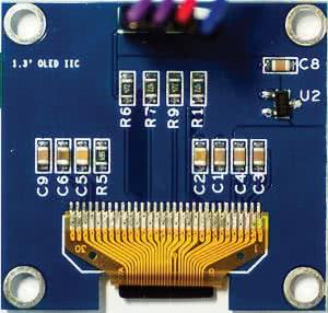 Do sterowania matrycą i komunikacji z hostem zastosowano sterownik SH1106 (rysunek 2). Jest to specjalizowany układ przeznaczony do sterowania matryc OLED/PLED o rozdzielczości maksymalnej 132×64 piksele. Wbudowany driver steruje 132 segmentami i 64 kolumnami matrycy typu Common Cathode. Sterownik ma tryb oszczędzania energii Sleep Mode z poborem prądu nieprzekraczającym 5 mA. Nie bez znaczenia jest tez szeroki zakres temperatury pracy - od -40°C do +85°C.