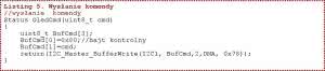 Mając do dyspozycji procedurę wysyłania bajtów można napisać dwie funkcje podstawowe - do wysyłania komendy i do wysyłania jednej danej. Pokazano je na listingu 5 i listingu 6.