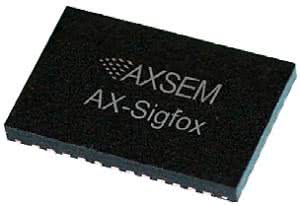 Szwajcarska firma Axsem, wyspecjalizowany producent mikrokontrolerów RF, opracowała układ AX-Sigfox (fotografia 4) umożliwiający transmisję danych w sieci Sigfox przez dowolną aplikację, przy wykorzystaniu zaledwie 2,6 cm² powierzchni na płytce drukowanej (20 mm×13 mm). Układ może również pracować autonomicznie kontrolując niewielkie sieci sensorów. AX-Sigfox jest zaprogramowany do natychmiastowego działania, a dodatkowo może obsłużyć program użytkownika.