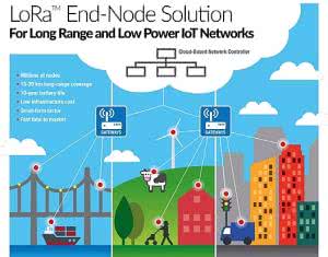 Technologia LoRa (Long Range Radio) przy małej przepustowości danych umożliwia aplikacjom IoT oraz M2M komunikację bezprzewodową na dystans ponad 15 kilometrów, przy żywotności baterii mogącej przekroczyć 10 lat. LoRa umożliwia połączenie milionów bezprzewodowych węzłów z kompatybilnymi bramkami i ma kilka kluczowych zalet w porównaniu do innych rozwiązań bezprzewodowych. Na przykład, wykorzystuje ona modulację z rozpraszaniem widma, ze zdolnością do demodulacji sygnału leżącego o 20 dB poniżej poziomu szumu. W porównaniu do sieci komórkowych 3G i 4G, technologia LoRa jest też lepiej skalowalna i bardziej opłacalna dla aplikacji wbudowanych. Ma przy tym znacznie większy zasięg niż pozostałe, popularne protokoły bezprzewodowe, co pozwala urządzeniom na działanie bez wzmacniaczy, zmniejszając całkowity koszt aplikacji.