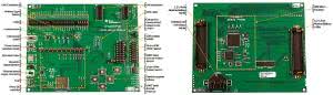 Płyta główna została wyposażona w przycisk zerowania, podzespoły emulatora XDS100v3, złącza do podłączenia modułu rozszerzeń, koszyczki do montażu baterii. Rozmieszczenie elementów na płycie SRF06EB pokazano na rysunku 2.