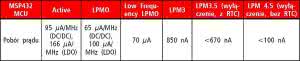 Jednoczesne próbkowanie wejść pozwala na skrócenie czasu pracy mikrokontrolera i dalsze obniżenie poboru energii. Jakby tego było mało, CPU mikrokontrolera MSP432 pobiera z predykcją do 8 instrukcji z pamięci programu w tym samym czasie, co zmniejsza liczbę cykli odczytu pamięci Flash, podwyższając prędkość wykonywania aplikacji oraz obniżając pobieraną moc. Zmieniono też podejście do trybów pracy energooszczędnej - teraz procesor nie tylko może przebywać w którymś z 5 trybów, ale również dynamicznie zmieniać je w trakcie pracy aplikacji (rysunek 3).